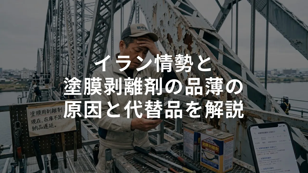 米国とイスラエルによる2026年2月28日のイラン攻撃から、イラン情勢は急速に悪化し、日本が使う原油の大半が通過するホルムズ海峡が事実上封鎖されました。この影響で、建築用・鋼構造物用塗膜剥離剤が品薄になっています。この記事では、品薄の背景と、影響を受けにくい弊社の塗膜剥離剤を解説します。